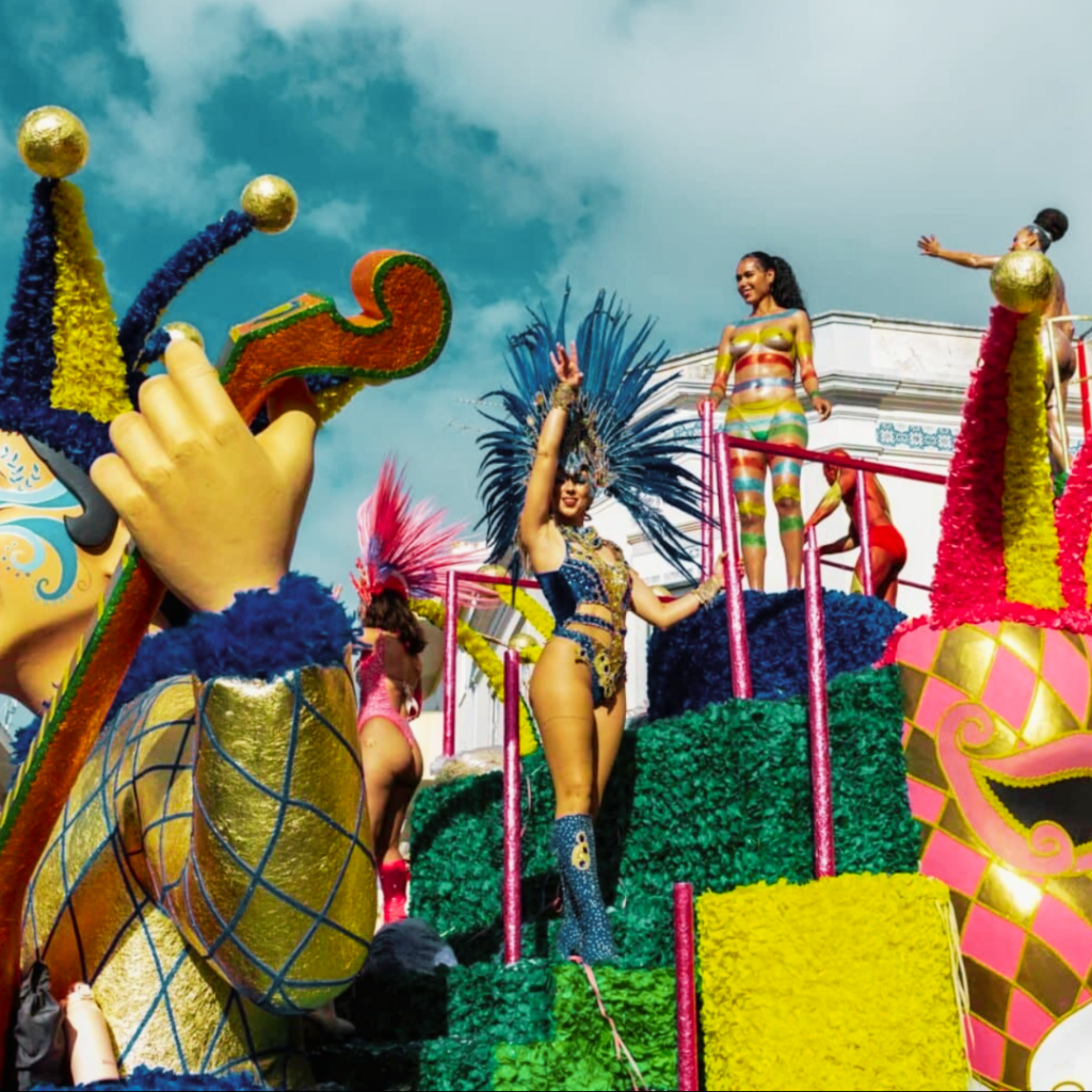 Défilés, musiques brésiliennes, costumes colorés et public familial. L’ambiance est plus détendue, plus “plein air”, idéale si tu veux associer Carnaval et lumière naturelle, plutôt que nuits tardives et clubs.